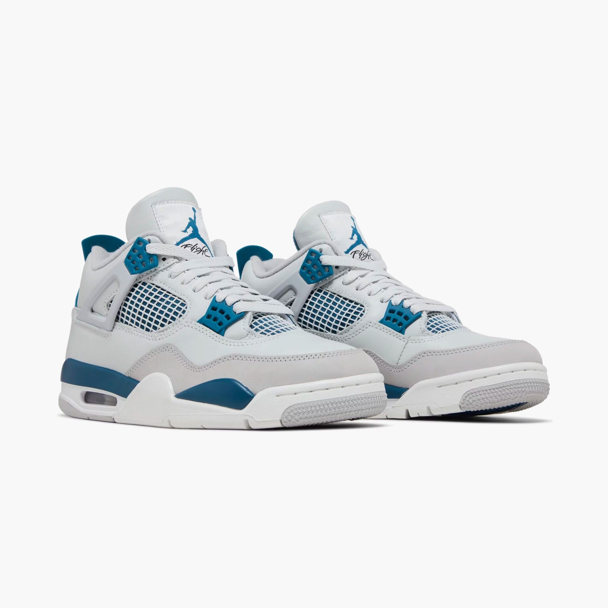 La edición 2024 de las Air Jordan 4 Retro "Military Blue", también conocidas como "Industrial Blue", revive una codiciada combinación de colores original de la icónica silueta. La parte superior está confeccionada en cuero liso color hueso , con malla en el panel lateral y una capa tonal en el antepié . Un vibrante logotipo Jumpman en azul adorna la lengüeta tejida, a juego con los ojales moldeados y la lengüeta del talón, marcada con el logotipo Nike Air . La zapatilla reposa sobre una ligera entresuela de poliuretano con una unidad Air integrada en el antepié y una unidad Air visible en el talón.